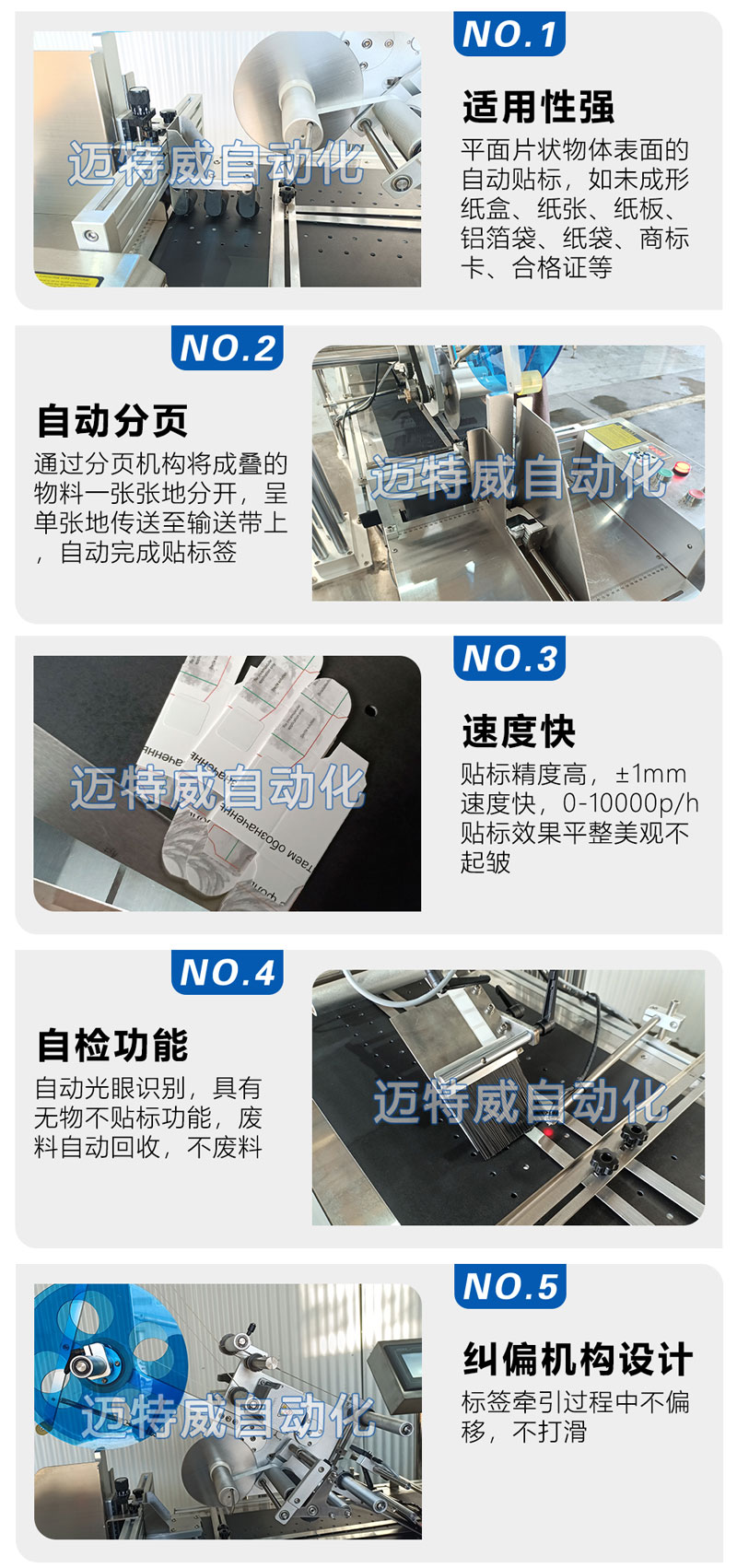分頁貼標(biāo)機(jī)主要適用于未成形紙盒、紙張、紙板、鋁箔袋、紙袋、商標(biāo)卡、合格證等平面片狀物體表面的自動貼標(biāo)??杉臃猪摍C(jī)單機(jī)使用,亦可與其它機(jī)器組成聯(lián)動生產(chǎn)線。還可以根據(jù)生產(chǎn)需求在本機(jī)上配備打碼機(jī)、噴碼機(jī),實(shí)現(xiàn)貼標(biāo)和打碼同步完成。
