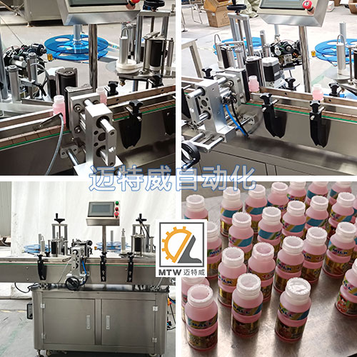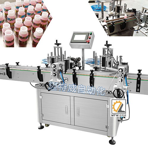 圓瓶同側(cè)上下貼標(biāo)機(jī)主要適用于圓瓶的上下兩張標(biāo)貼標(biāo)。
