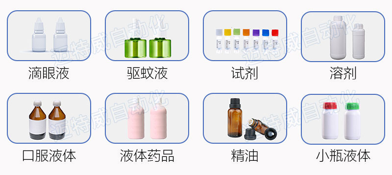 口服液體/溶液灌裝機(jī)適用于0.5-10、2-20、5-50、10-100ml的玻璃瓶、塑料瓶的自動(dòng)理瓶、灌裝、上蓋旋蓋等,可以配上貼標(biāo)機(jī)同步完成瓶身的自動(dòng)貼標(biāo)。如滴眼液、驅(qū)蚊液、試劑、溶劑、口服液體、醫(yī)藥液體、精油、及其他小瓶液體灌裝。