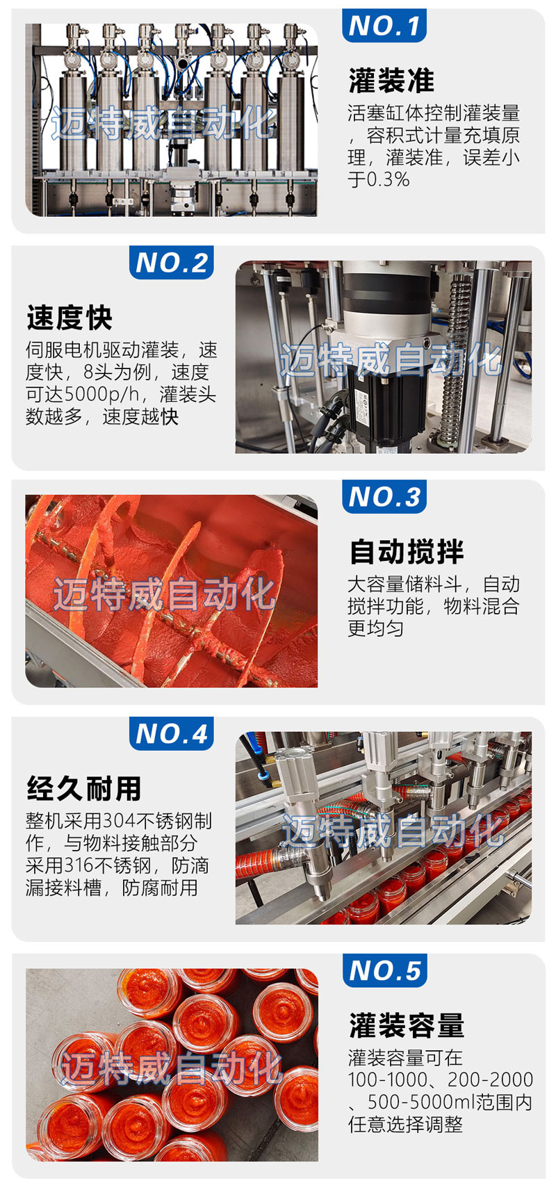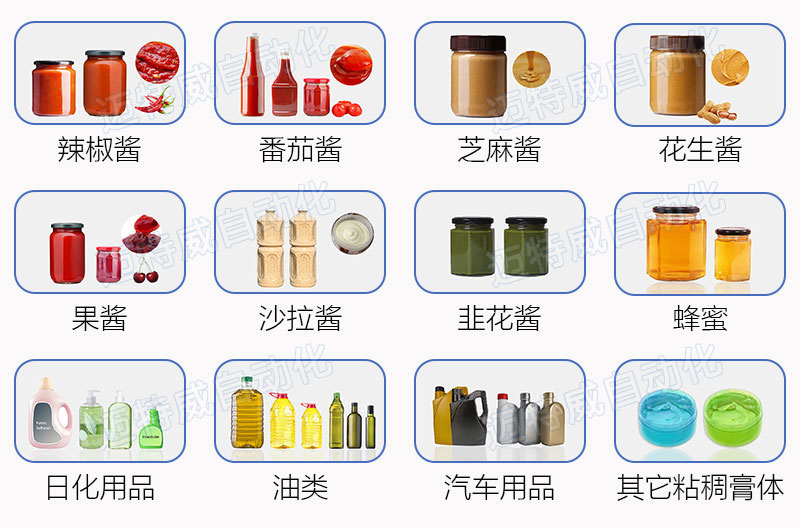 應(yīng)用行業(yè): 如辣椒醬,芝麻醬,番茄醬,沙拉醬,果醬,花生醬,寵物醬料,蒜泥,韭花醬,蟹黃醬,調(diào)味料等粘稠醬類灌裝。