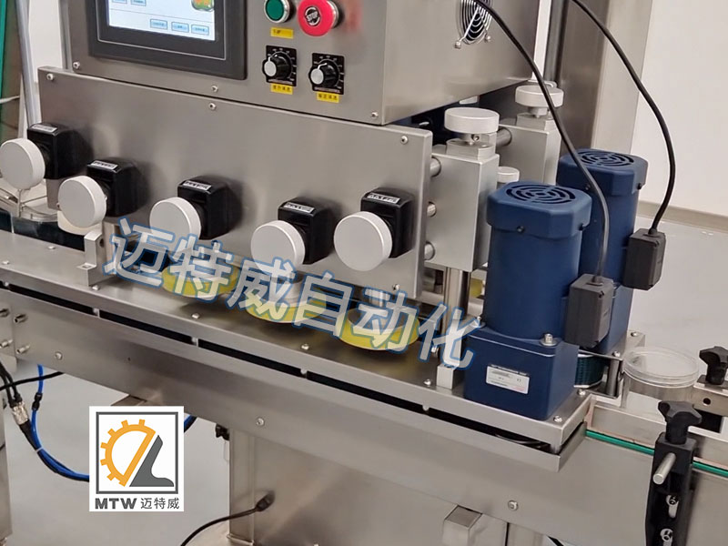 ● 三組搓蓋輪設(shè)計成從高到低的階梯式,以保證瓶蓋和瓶口螺紋絞合的不同水平位置都有搓蓋動作,確保每個瓶蓋和瓶子都鎖到位;